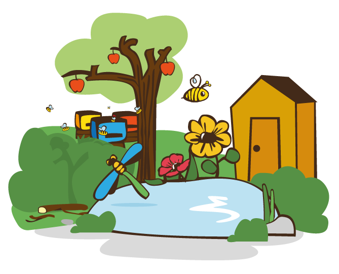 The Forest Garden follows sustainable principles. It is on a site of unmanaged land and our keen team of volunteers have been busy clearing away areas of dead undergrowth and pollarding many overgrown trees and shrubs. Pathways and clearings were made to house the hives. The flora and fauna on the site is abundant and provides good foraging for the bees.